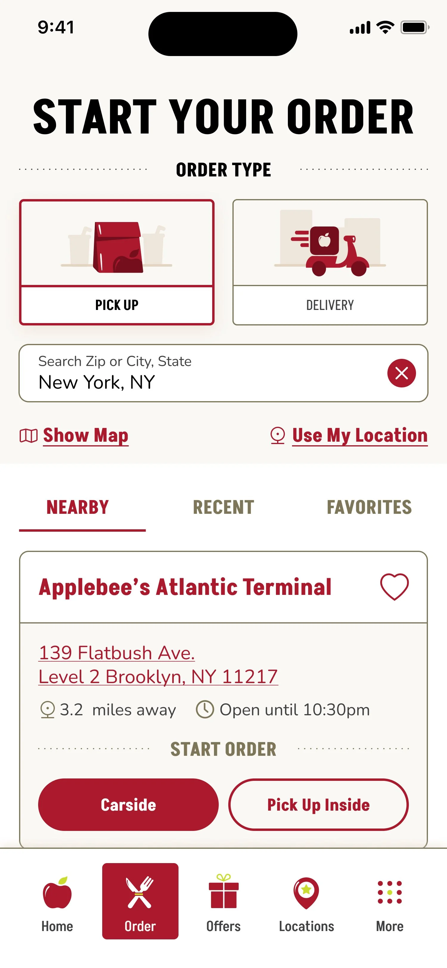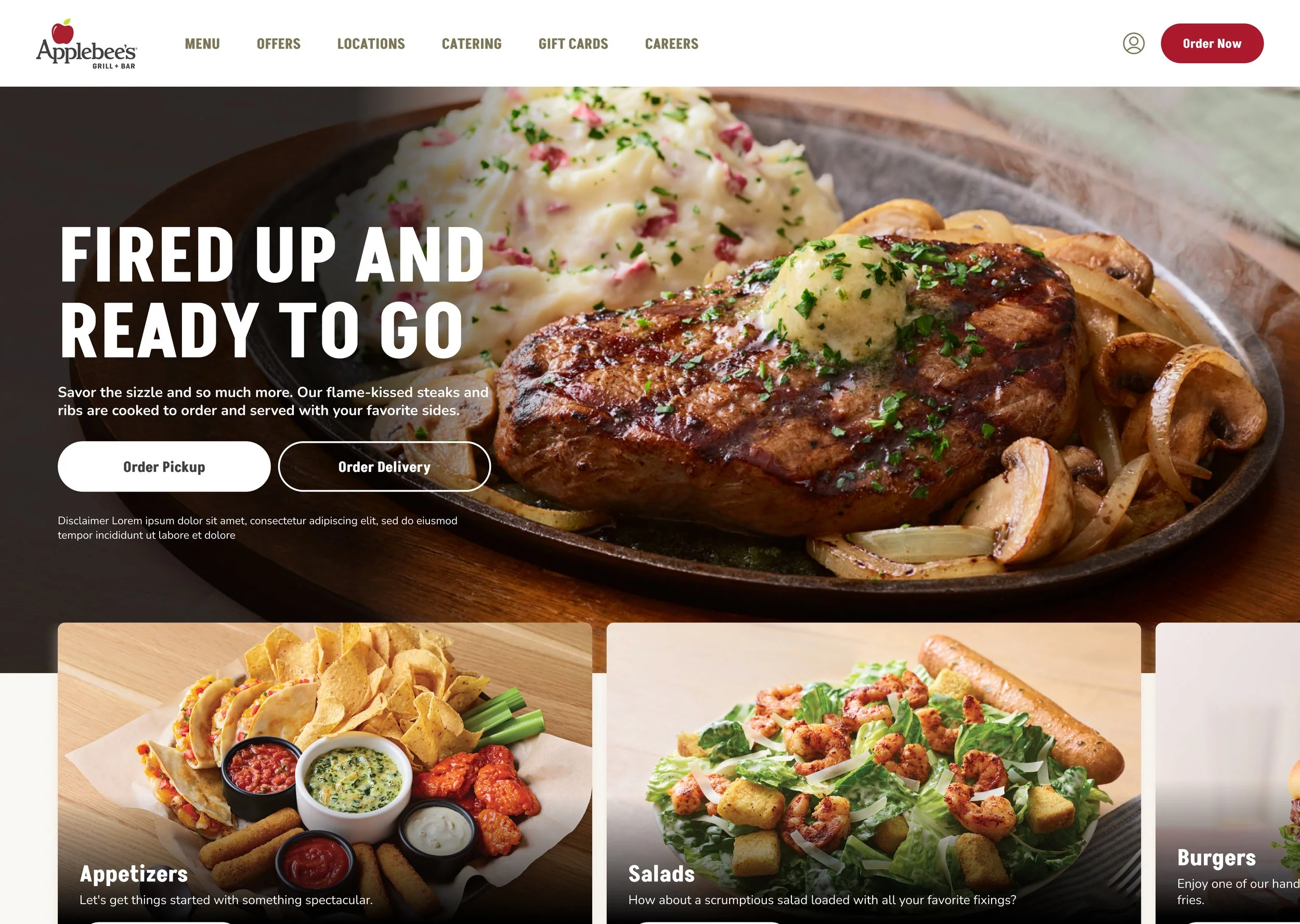 The redesign poses a greater emphasis on pick up and delivery orders for Applebee’s. It allows for more efficient order placement via quick add orders, favorite stores, saved delivery addresses and payment methods. Order personalization is much clearer and users are incentivized to explore all the ways they can customize their meals. New carside and dine-in features allow for more ways to enjoy Applebee's while staying in-app.